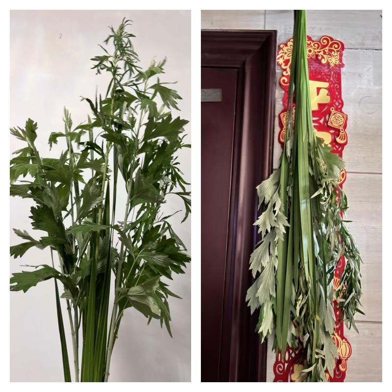 在端午节这天,家家户户将艾草插在门楣上,或悬于堂中,寓意着招百福、驱邪祟,保佑家人身体健康,平安度夏。